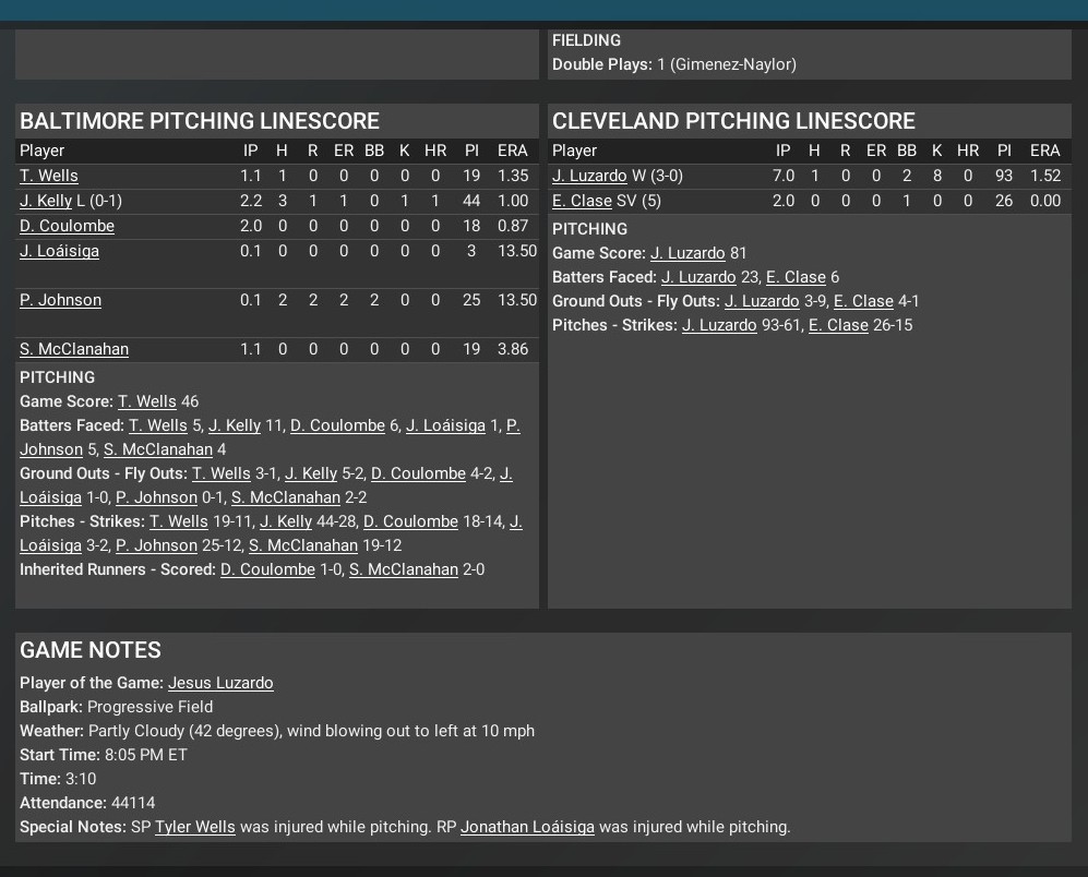MLB news: Oct. 22 -- ALCS Game 4 - Cleveland Indians 3, Baltimore Orioles 0, Cleveland leads 3-1