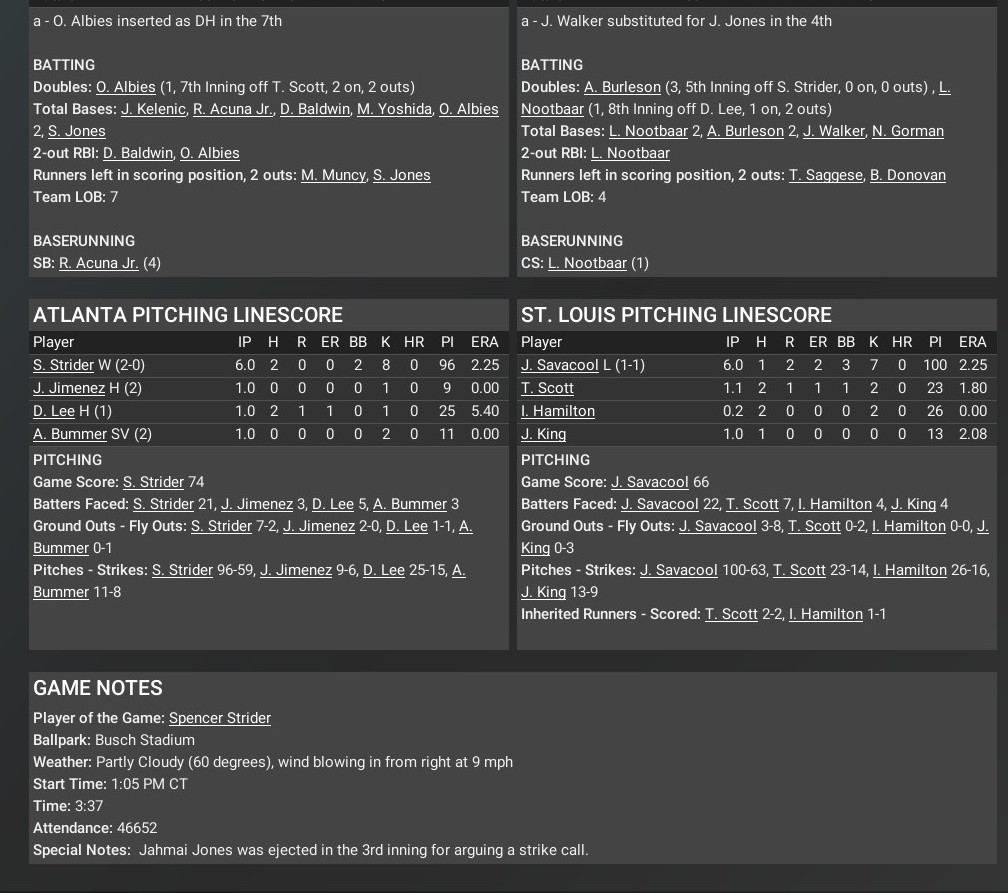 MLB news: Oct. 24 -- NLCS Game 5 -- Atlanta Braves 9, St. Louis Cardinals 0, Atlanta leads 3-2