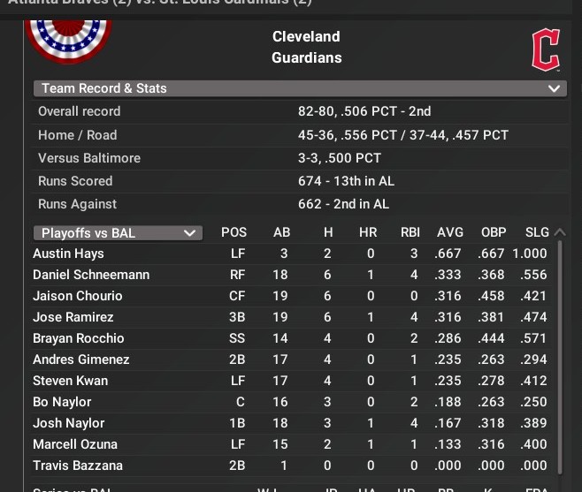 MLB news: Nov. 5 -- Cleveland Indians postseason statistics