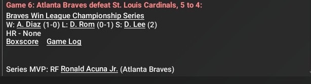 MLB news: Oct. 26 -- NL Championship Series -- Atlanta Braves def. St. Louis Cardinals, 4-2