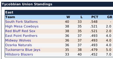 Wednesday, June 25, 2003 Tycobbian Union East Division Mid-Season Standings |
