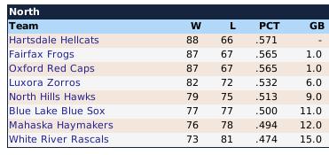 Monday, September 22, 2003 St. John Crusaders Triumph in RU South - Sunbirds, Westerners and Blackhawks Also Make Playoffs. Manager Dickie Billings' St. John Crusaders (89-65) went from worst to first this year in the Ruthlandian Union South. Last Year the Crusaders had a dreadful season and ended up in the basement. However, this year they captured the regular season crown by four games over second place Belair Beach (85-69). Waleska (83-71), skippered by McGraw Johnson, came in third and was six games out of first. The Valka Blackhawks (75-79), led by Jaan Kuurus, sneaked into fourth place and the playoffs on the last day of the season, just barely squeaking by Stacy Engel's Claxton Diamonds (74-80). St. John closed out the season with a bang, compiling a 33-15 mark during August and September to surpass everybody. The Sunbirds did well under the guidance of Marty Pedroza with a 28-20 record the final two months of the season, but it wasn't good enough to hold off the Crusaders. The Westerners fell back in the pack with a 25-23 in those two months. Valka surged to 29-19 during the same period, but had too much ground to make up, but the Blackhawks slip into the playoffs. Fifth place Claxton fell to the wayside with a 24-24 mark late in the season. The San Dimas Rancheros (71-83) with Paco Banderos at the helm faltered badly, going into a 13-35 funk to fall out of the first division down to the sixth spot and 18 games off the pace. Torry Joseph's Grand City Cybercats (67-87) closed out the year in seventh place and 22 games out, while the Crystal Lake Crushers (65-89) pulled the rear, 24 games back. It was the second consecutive poor season for Herman "Baby' George's ballclub. The Islandian Pro Alliance playoffs are slated to begin today. Regular season winner St. John will open up on the road against the fourth place Valka Blackhawks and second place Belair Beach and third place Waleska will meet at Westerner Field. Lower seeds will get the first game at home and the higher seeds will get the home field advantage with two games at home if the series go to three games. Last edited by Eugene Church; 04-30-2009 at 04:31 PM. |