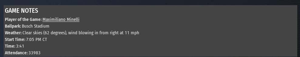 Walkers news: April 23 -- St. Louis 8, Chicago 0, Game 2