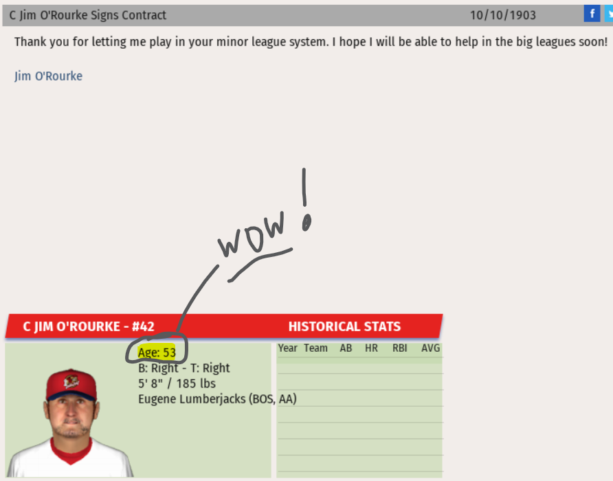 When 53-year old Jim O'Rourke came up on the free agent list, I had to make a minor league offer. Nothing lost and could be fun to see how he does.