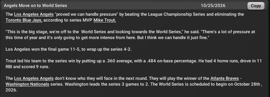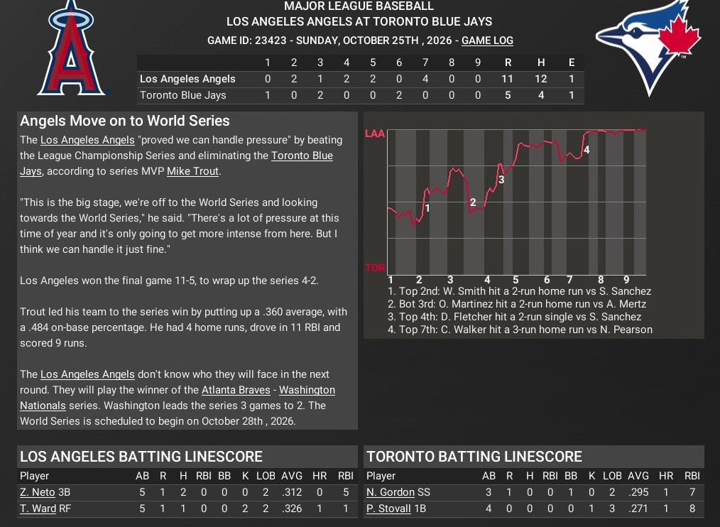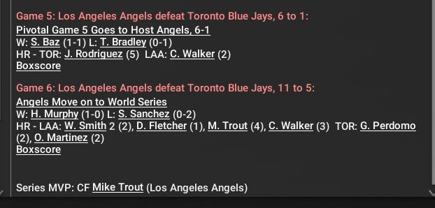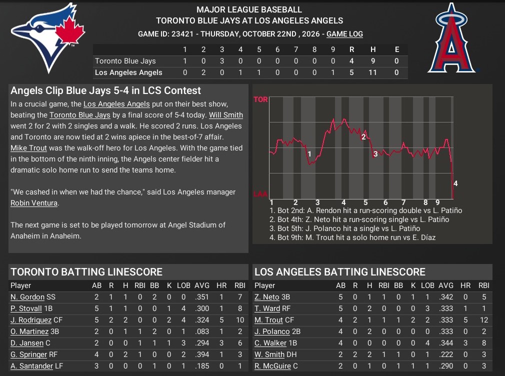MLB news: Oct. 25 -- AL Championship Series - L.A. Angels def. Toronto Blue Jays, 4-2