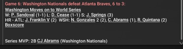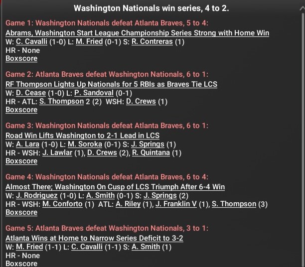 MLB news: Oct. 26 -- NL Championship Series -- Washington Nationals def. Atlanta Braves, 4-2 (2)