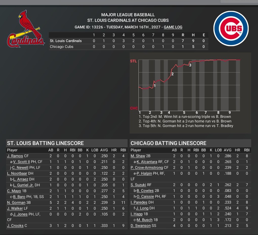 Cards news: March 16 -- Spring Training - St. Louis Cardinals 7, Chicago Cubs 1, (7-17-1)