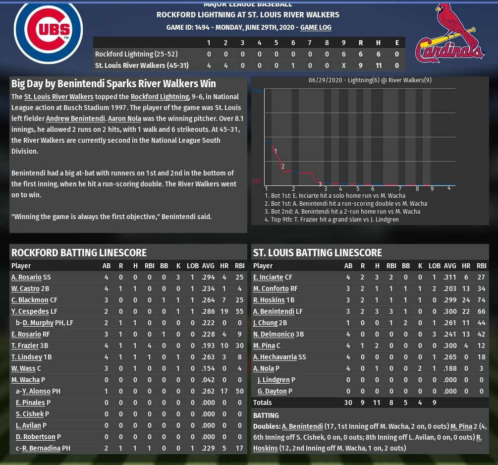 Walkers news: June 30 -- St. Louis 9. Rockford 6
