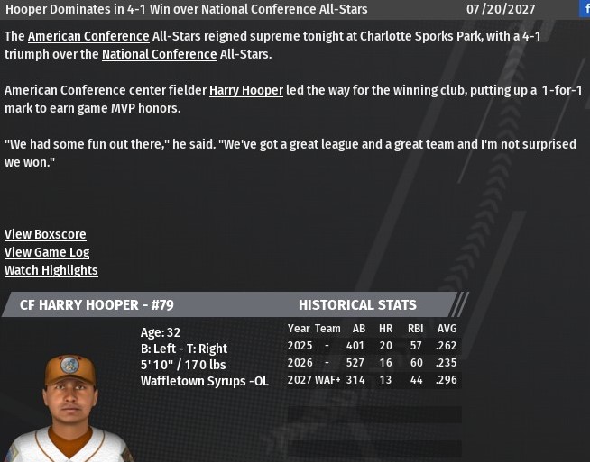 After a so-so season in 2026, and few roster changes rolling into the new season, fans of Waffletown weren't expecting much from their boys in 2027... it was the same club that struggled to win 84 games the prior year afterall...