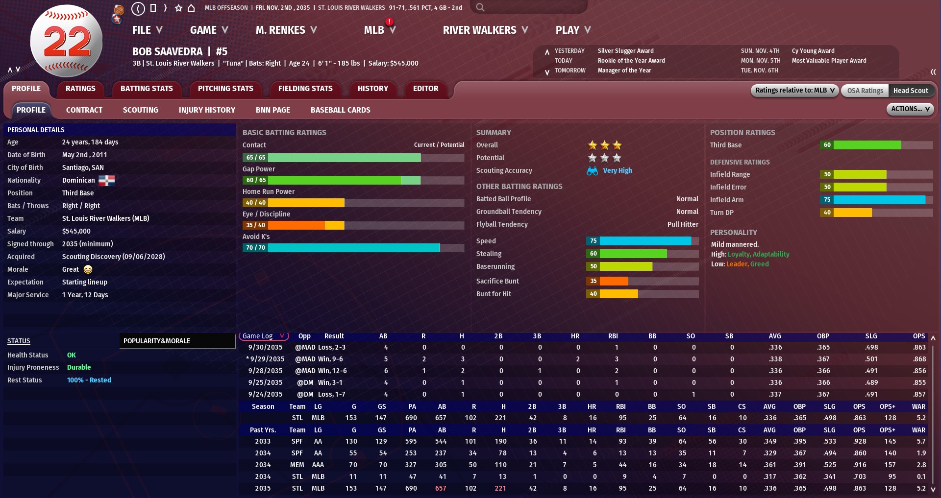 MBL news: Nov. 2 -- Rookies of the Year - Saavedra is unanimous choice in NL