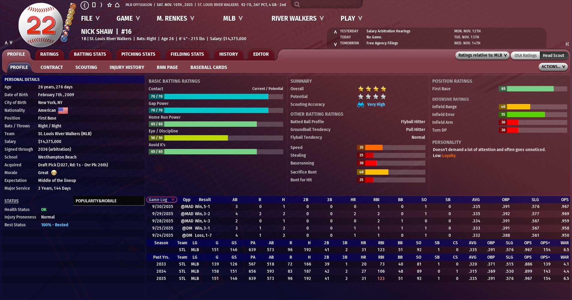 Gomez, 25, can play first base, second base and shortstop. He spent most of the 2035 season with the Sluggers, getting into 90 games/70 starts during which he hit .184 with five homers and 24 RBIs. Gonzalez, 25, played 30 games with the Walkers in 2035 hitting .220 with one homer and seven RBIs. Before that, he was with AAA Memphis, where in 61 games he batted .375 with nine homers and 46 RBIs. Sena, 20, has played in 157 games between rookie ball and high-A, and batted .291 with 11 homers and 62 RBIs. |