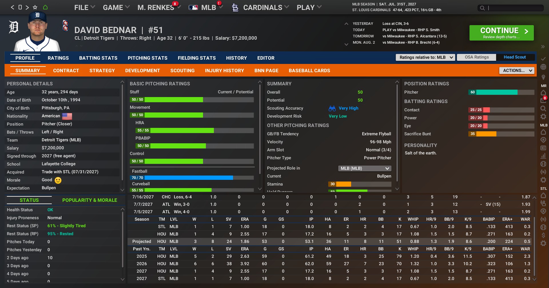Acquired in the fifth round of the 2024 draft by the Nationals, Diaz has spent time this season between Class A Freemont and AA Harrisburg. In those 36 games, he has hit .222 with three home runs and nine RBIs. The Cardinals acquired Scott, 33, prior to the 2026 season. That year went fine, as in 56 games he went 5-5 with three saves and a 3.88 ERA. The 2027 season, however, has been a different story. The veteran has pitched in 42 games going 3-4 with two saves, five blown saves and a 5.58 ERA. |