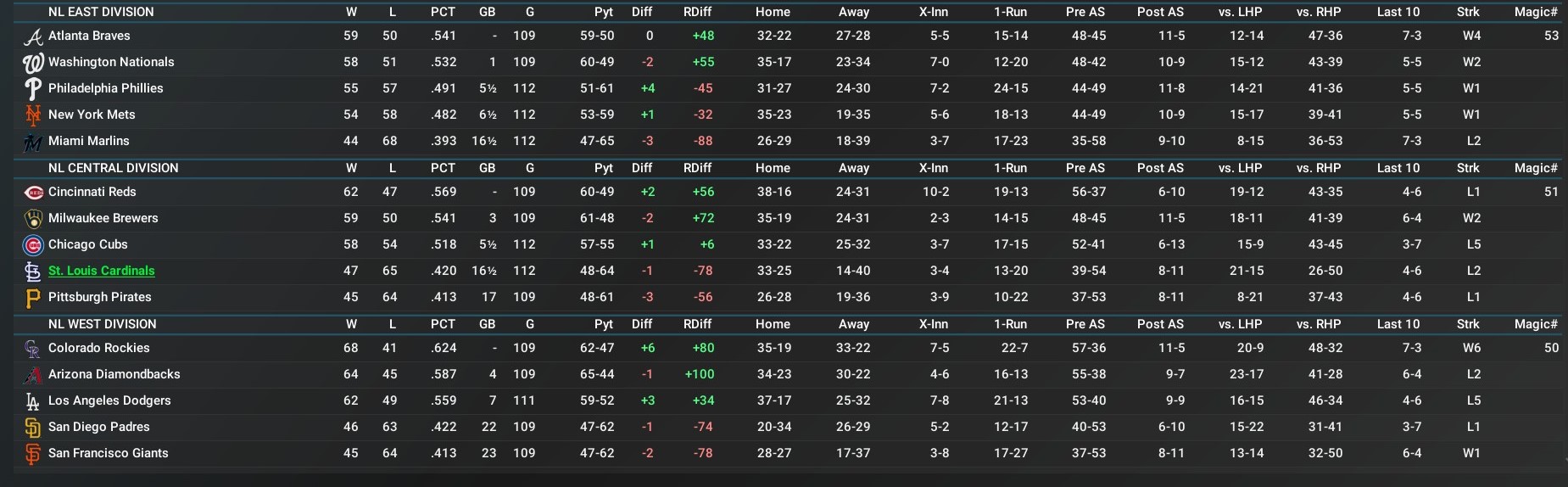 Record: 43-60, 4th, 16.5 GB Cincinnati