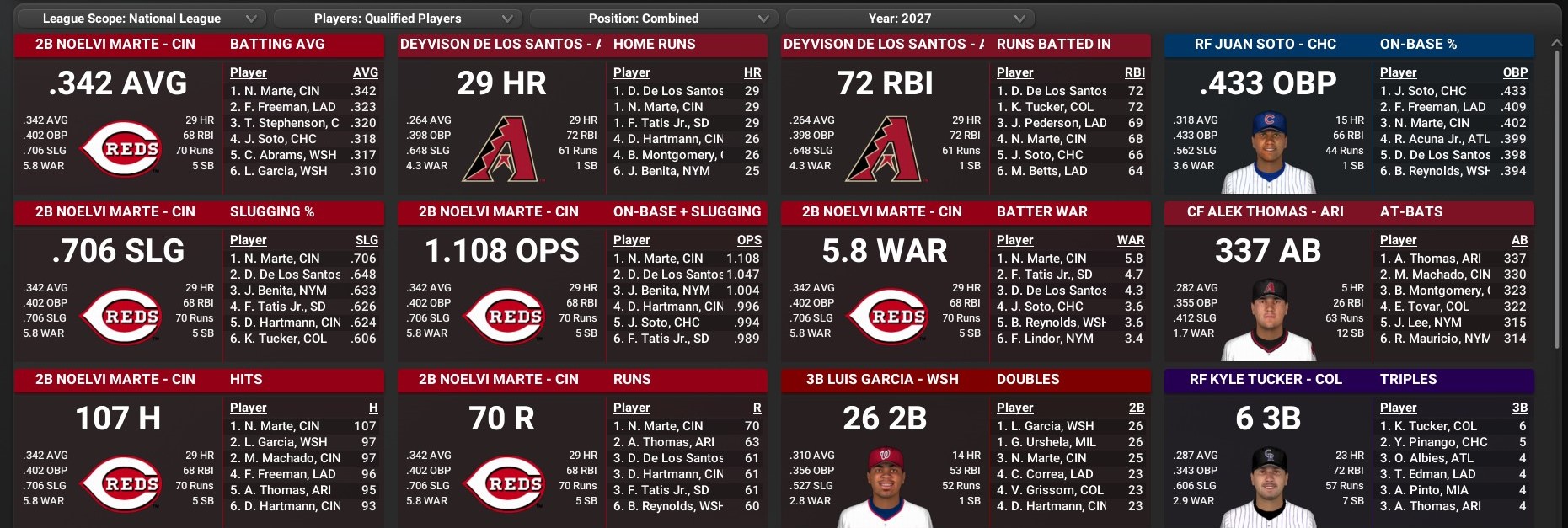 Cards news: July 1 -- 2027 team statistics