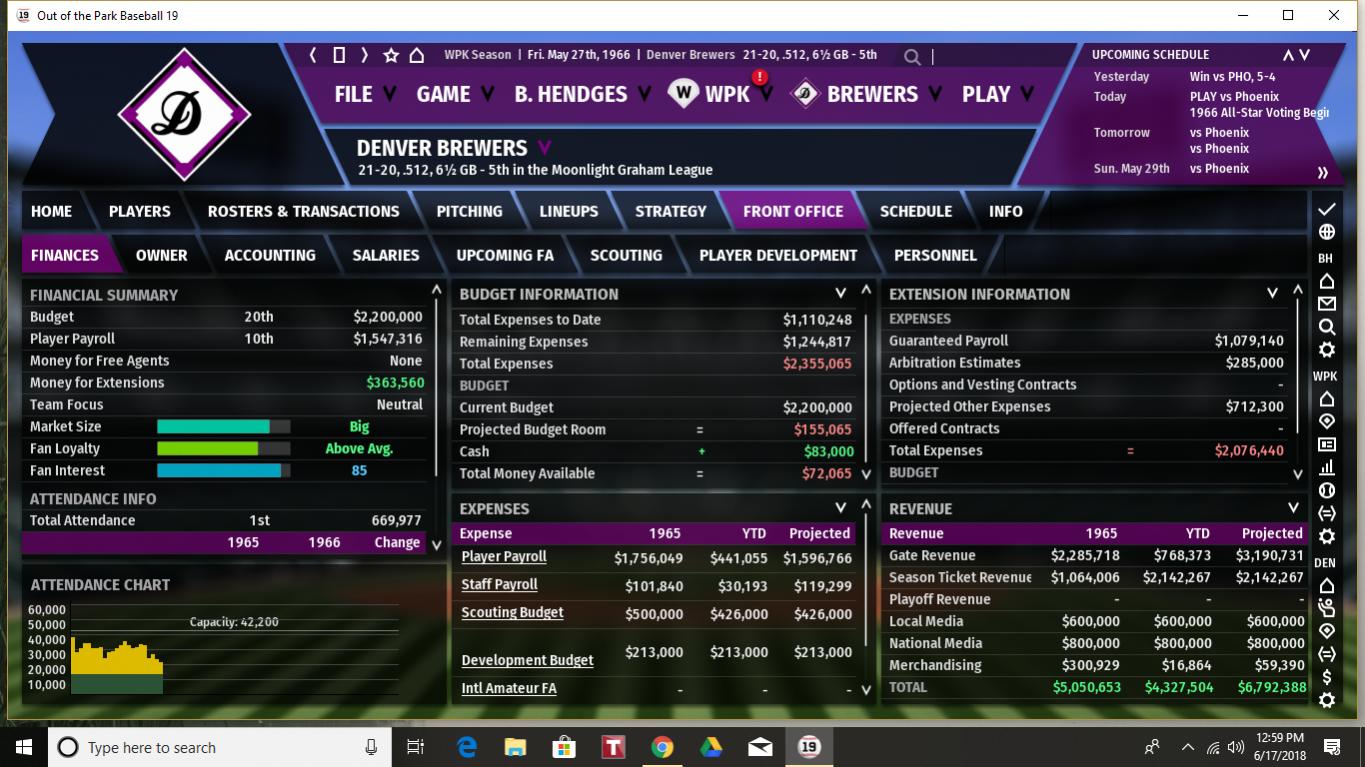 Week-in-Review: May 23rd-May 29th, 1966. The Brewers got the week off heading very much in the wrong direction as a team, and lost the final game of the 4-game series against Oklahoma City followed by dropping both games of a 2-game series against the mighty. L.A. Spinners. Things then got a bit better though as they met the Phoenix Speed Devils, who had recently vaulted over them into 3rd place, for 5 games at Brewers Grounds and took 4 out of 5 to end the week at an even 4-4.