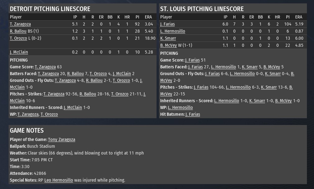 Walkers news: May 1 -- Detroit 6, St. Louis 0