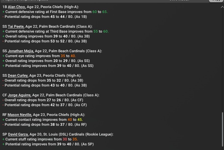 Cards news: Sept. 1 -- Player Development Report