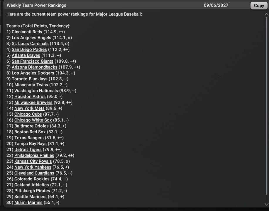 Go Back   OOTP Developments Forums > Out of the Park Baseball 25 > OOTP Dynasty Reports