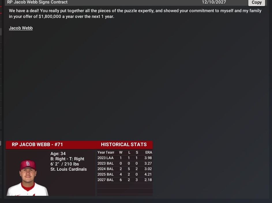 Cards news: Dec. 10 -- Right-handed reliever Jacob Webb agrees to deal