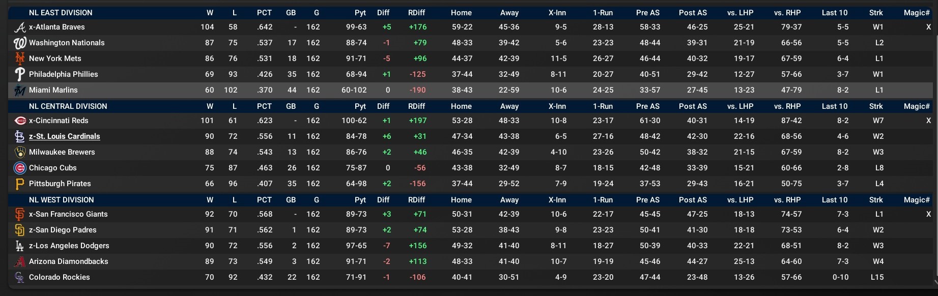 Record: 89-72, 2nd, clinched; Ted for 2nd NL Wild Card