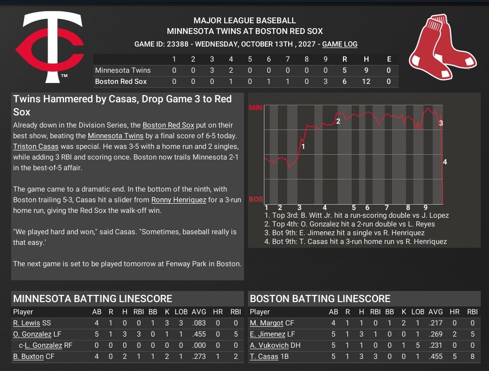 MLB news: Oct. 13 -- AL Division Series Game 3 - Red Sox 6, Twins 5, Minnesota leads 2-1