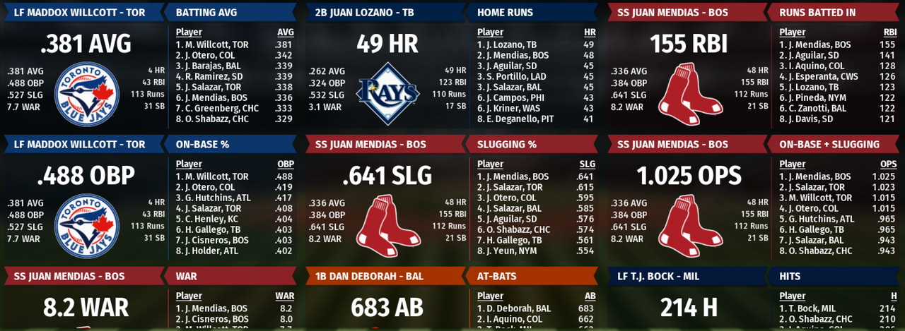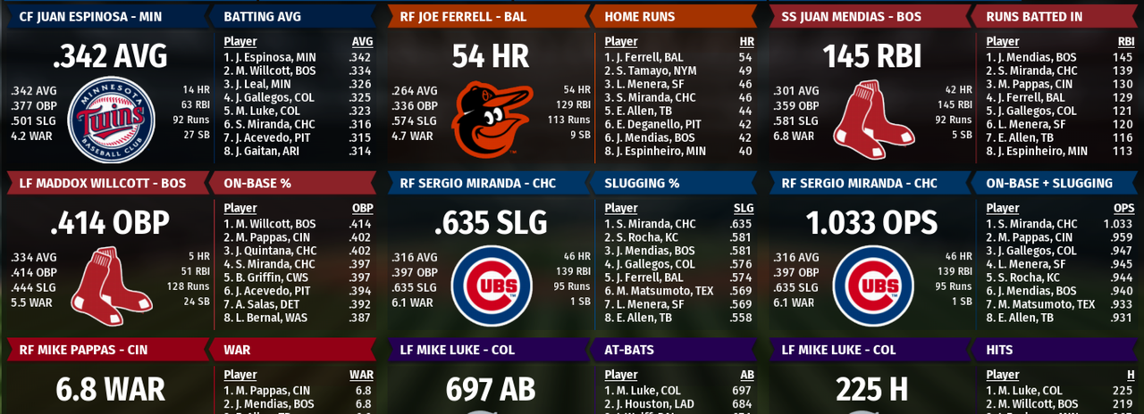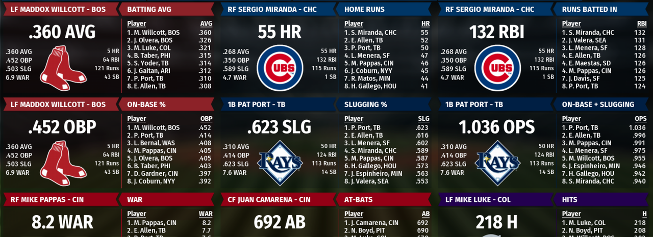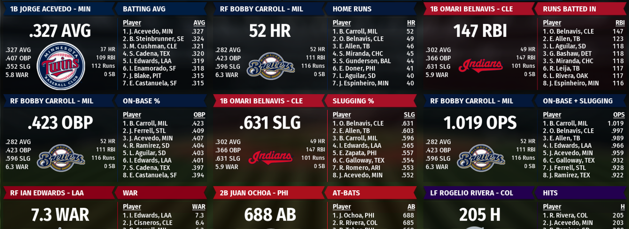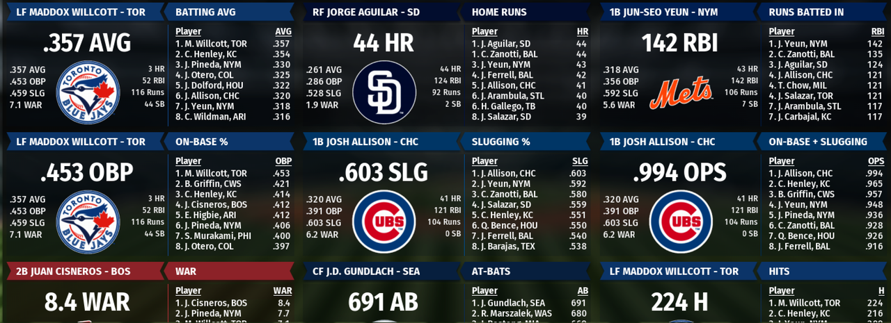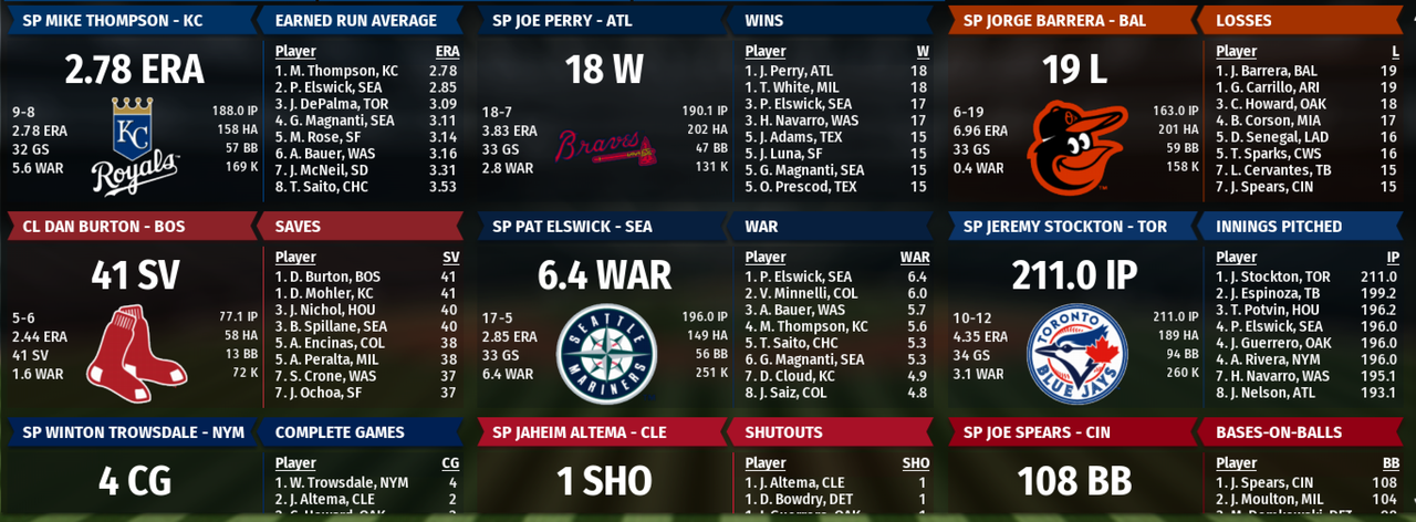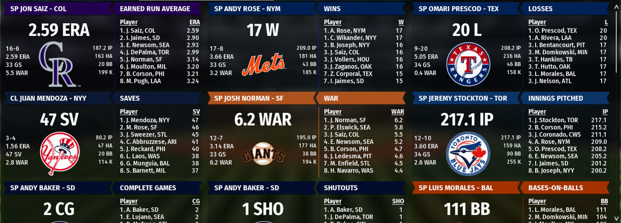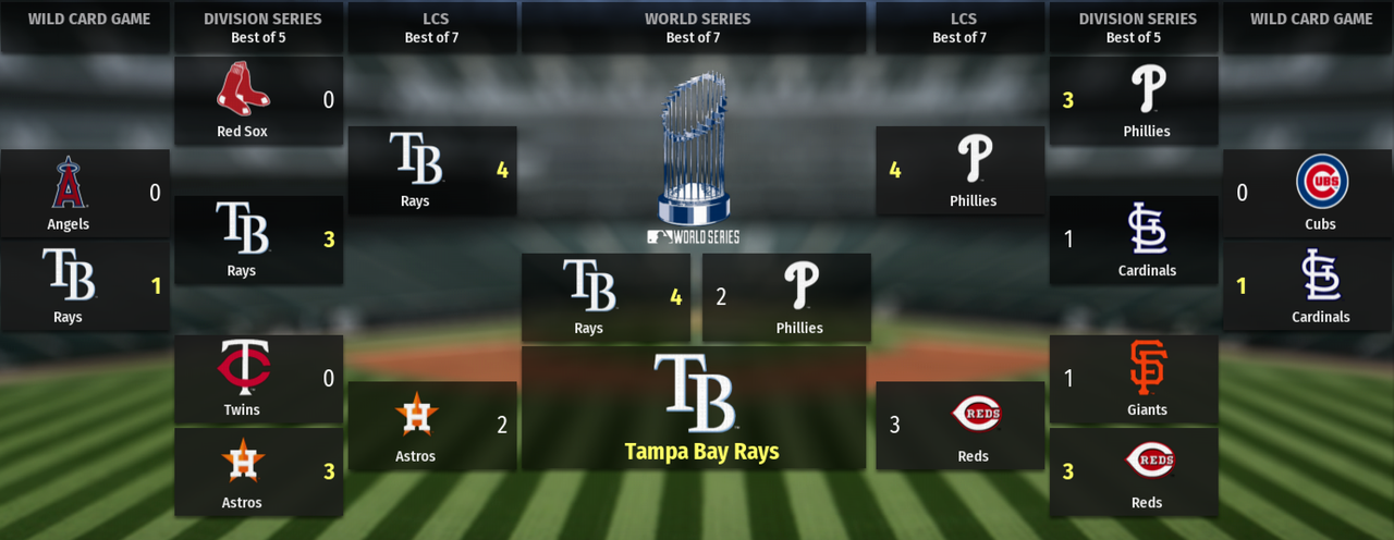 Cy Young: AL- Jake Yarborough (HOU) NL- Jim McBride (PHI) ROY: AL- Gualterio Asso (BOS) NL- Sergio Landeros Jr. (PIT) HOF: Serafino Soushina Regular season standings... ![]() Batting leaders... ![]() Pitching leaders... ![]() And playoffs... ![]() Nats miss playoffs again while their division rival wins another title. |