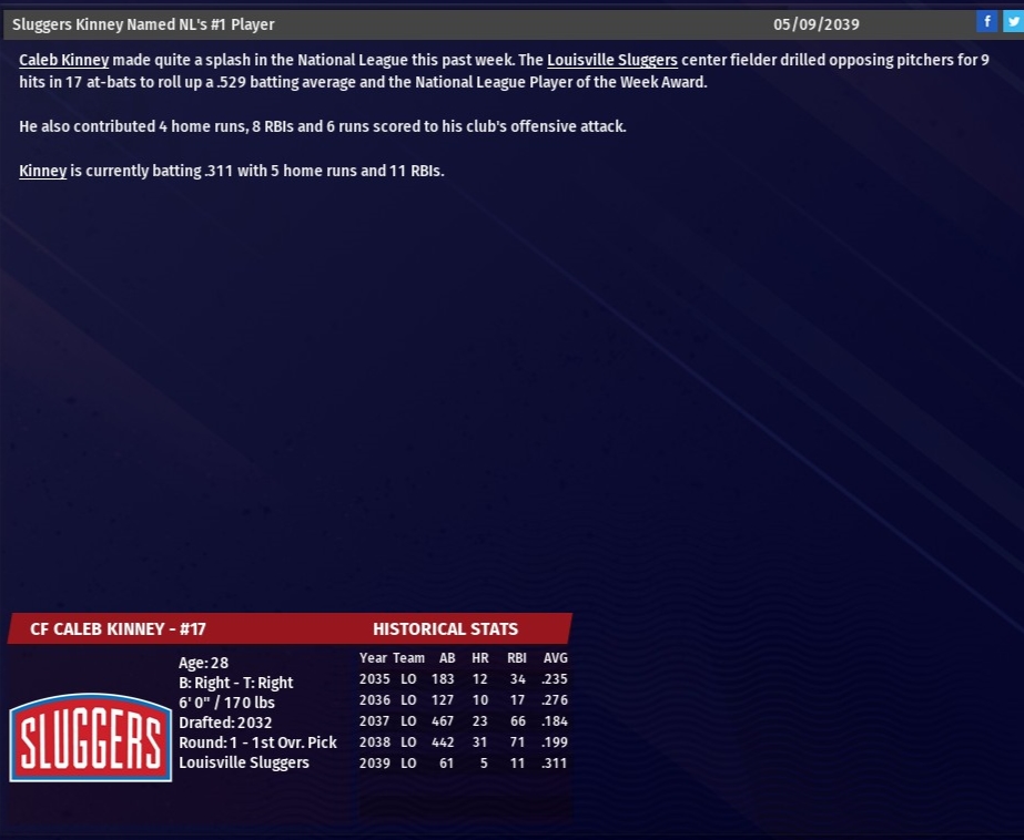 Fackelman, 31, signed a contract worth $9.5 million for the remainder of the 2039 season. The Walkers didn't intend to make the move, but when the re-signing of Daylen Reyes didn't pay off and the team got off to a horrible start, they opted to go after Fackleman. Fackleman spent the 2038 season with Columbus, where he hit .303 with six homers and 57 RBIs in 151 games (145 starts). For his career, Fackelman,who made it to the majors with Green Bay in 2028 and played there through 2036, is a .311 career hitter with 33 homers and 351 RBIs in 972 games (781 starts). Fackelman will play a few games at AAA Memphis before joining the Walkers. |