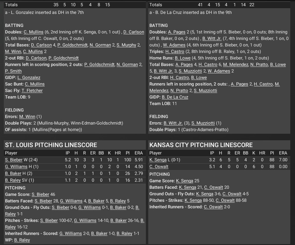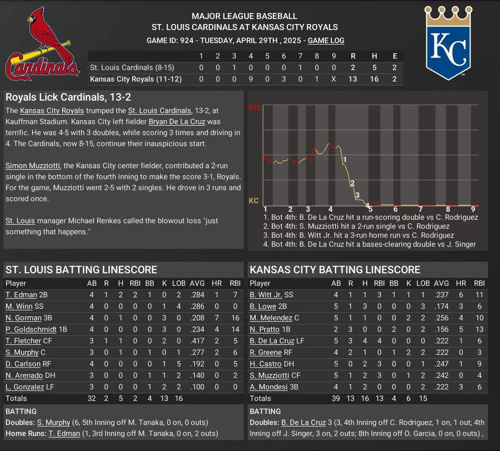Cards news: April 29 -- Kansas City 13, St. Louis 2
