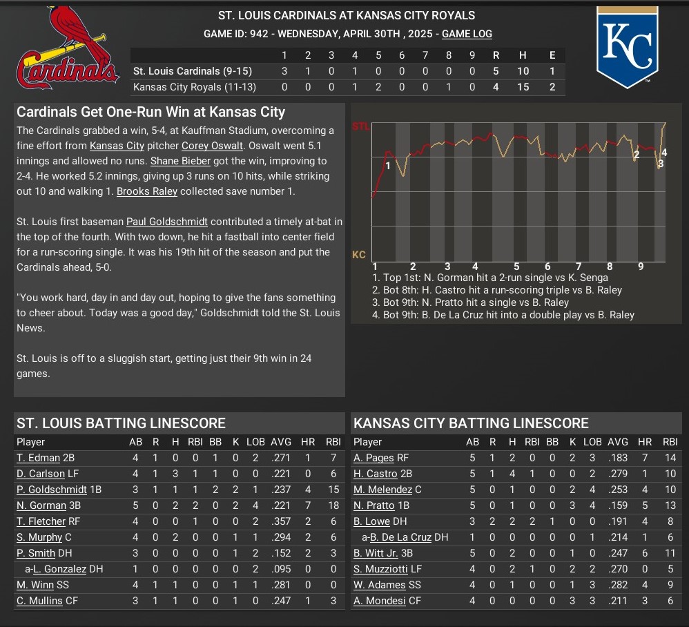Cards news: April 30 -- St. Louis 5, Kansas City 4