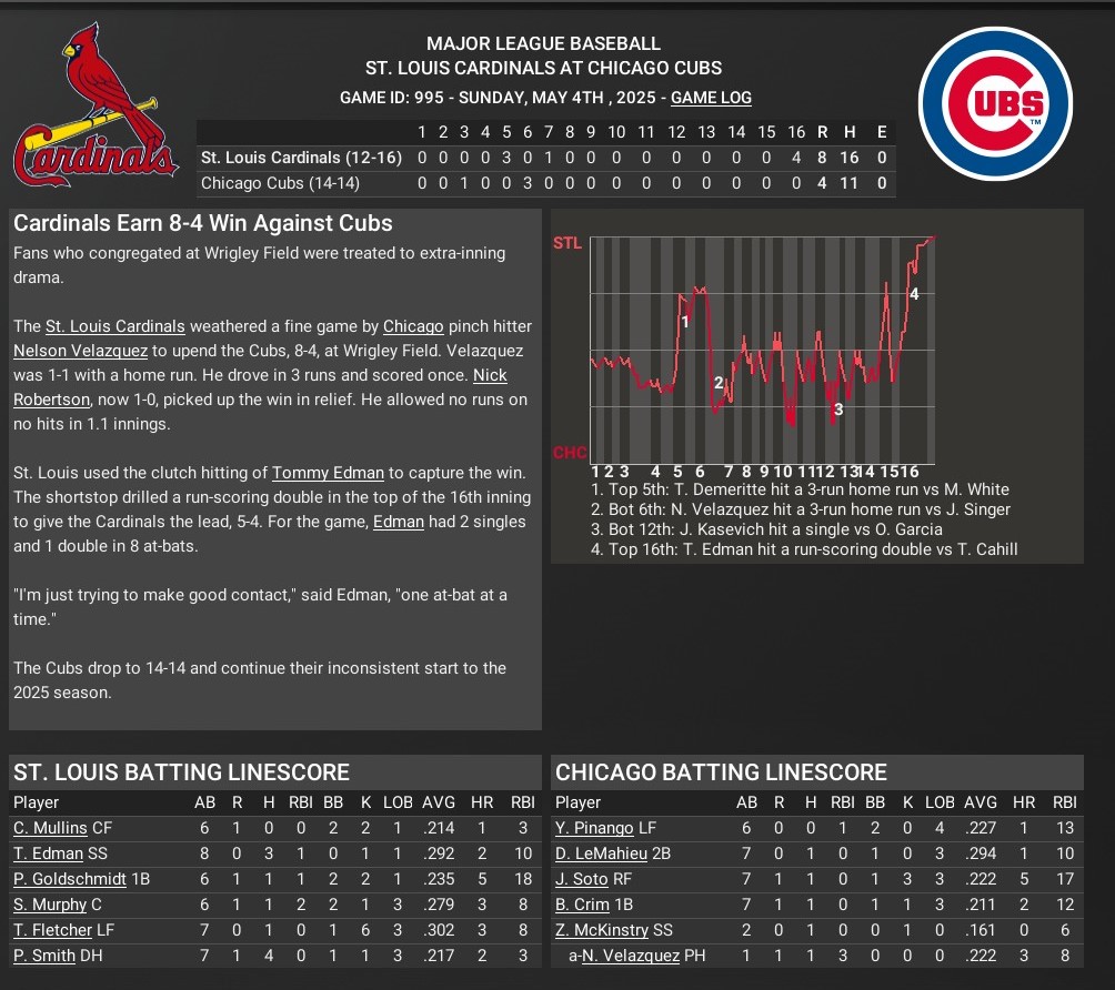 Cards news: May 4 -- St. Louis 8, Chicago Cubs 4, 16 innings