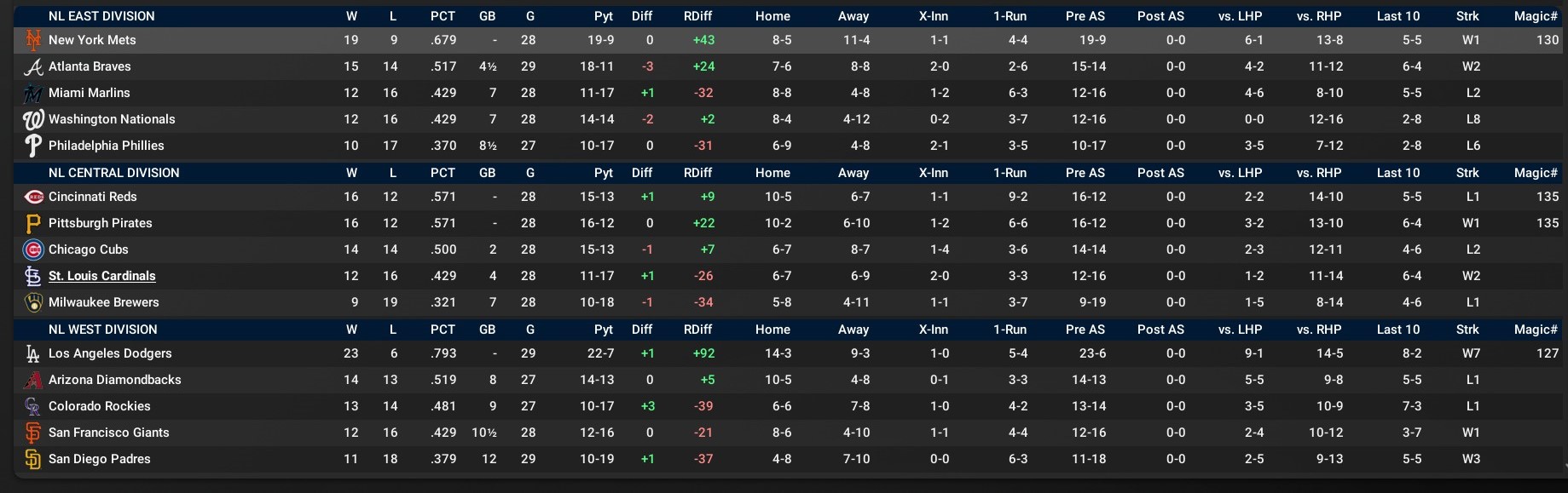 Record: 8-15, 4th, 5 GB Cincinnati, Pittsburgh and Chicago Cubs