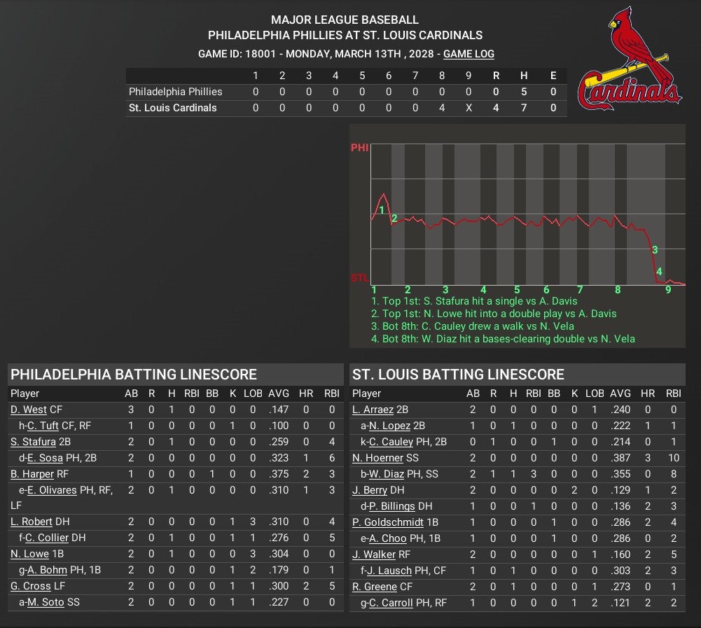 Cards news: March 13 -- Spring Training - St. Louis Cardinals 4, Philadelphia Phillies 0, (8-7-2)