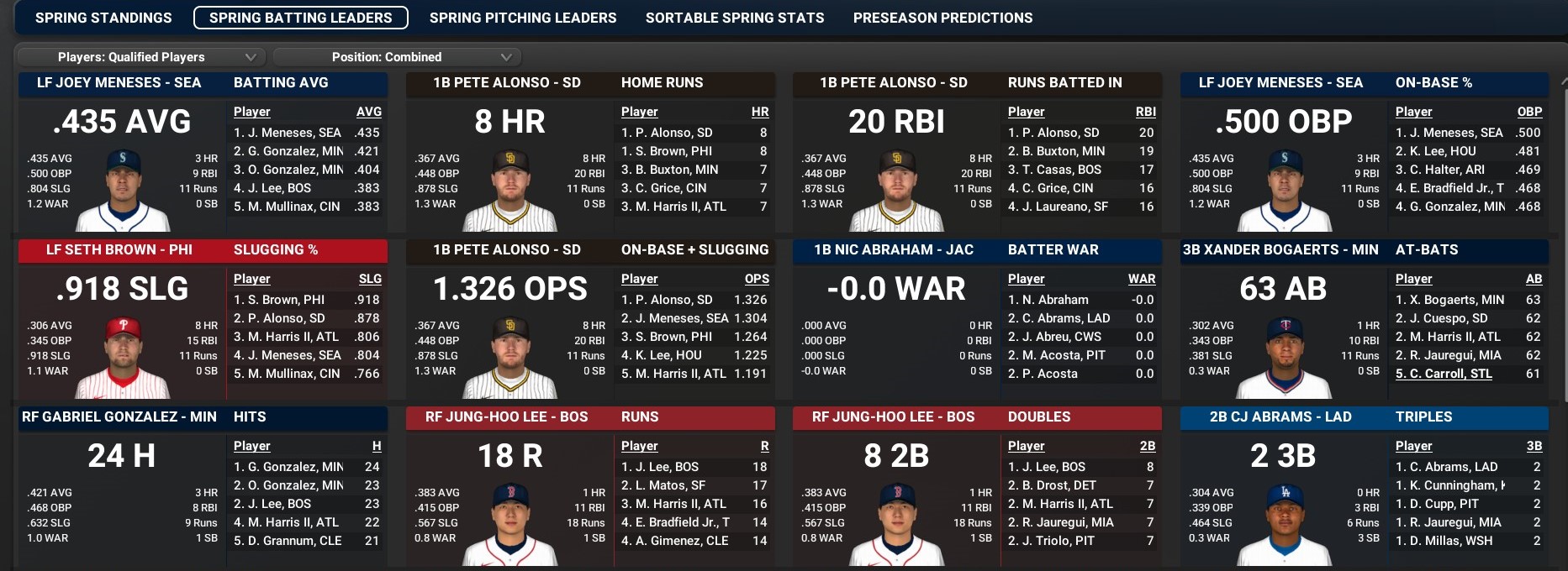 MLB news: March 17 -- Spring training - Leaders after 20 games
