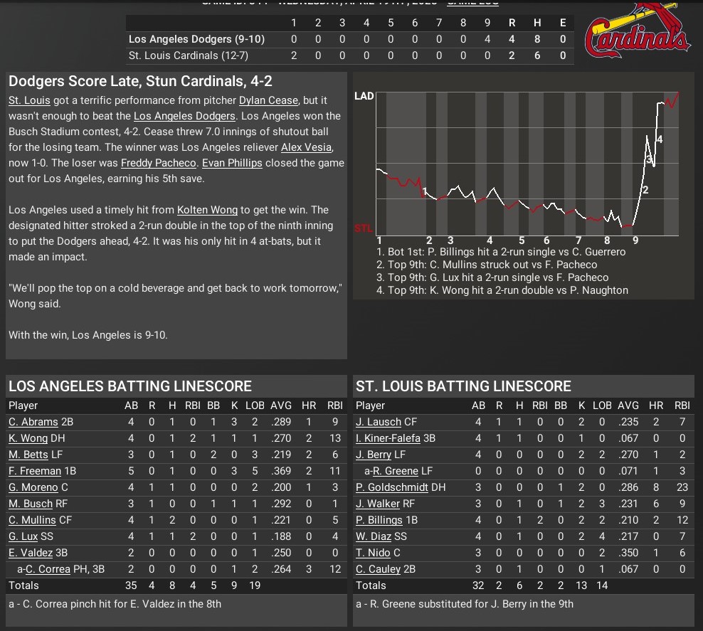 Cards news: April 19 -- Los Angeles Dodgers 4, St. Louis Cardinals 2