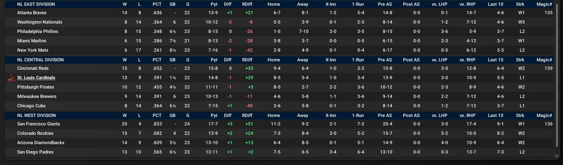 Record: 16-13, 2nd, 5 GB Cincinnati