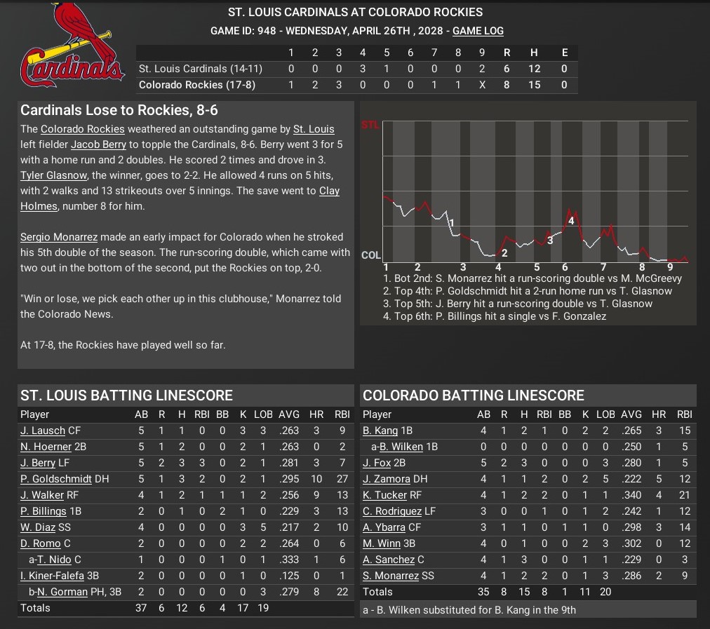 Cards news: April 26 -- Colorado Rockies 8, St. Louis Cardinals 6