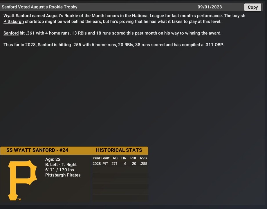Player of the Month: Boston Baro -- The 24-year-old first baseman hit .324 with six home runs, 19 RBIs and 19 runs scored in 25 games. He got on base at a .395 clip and slugged .588.