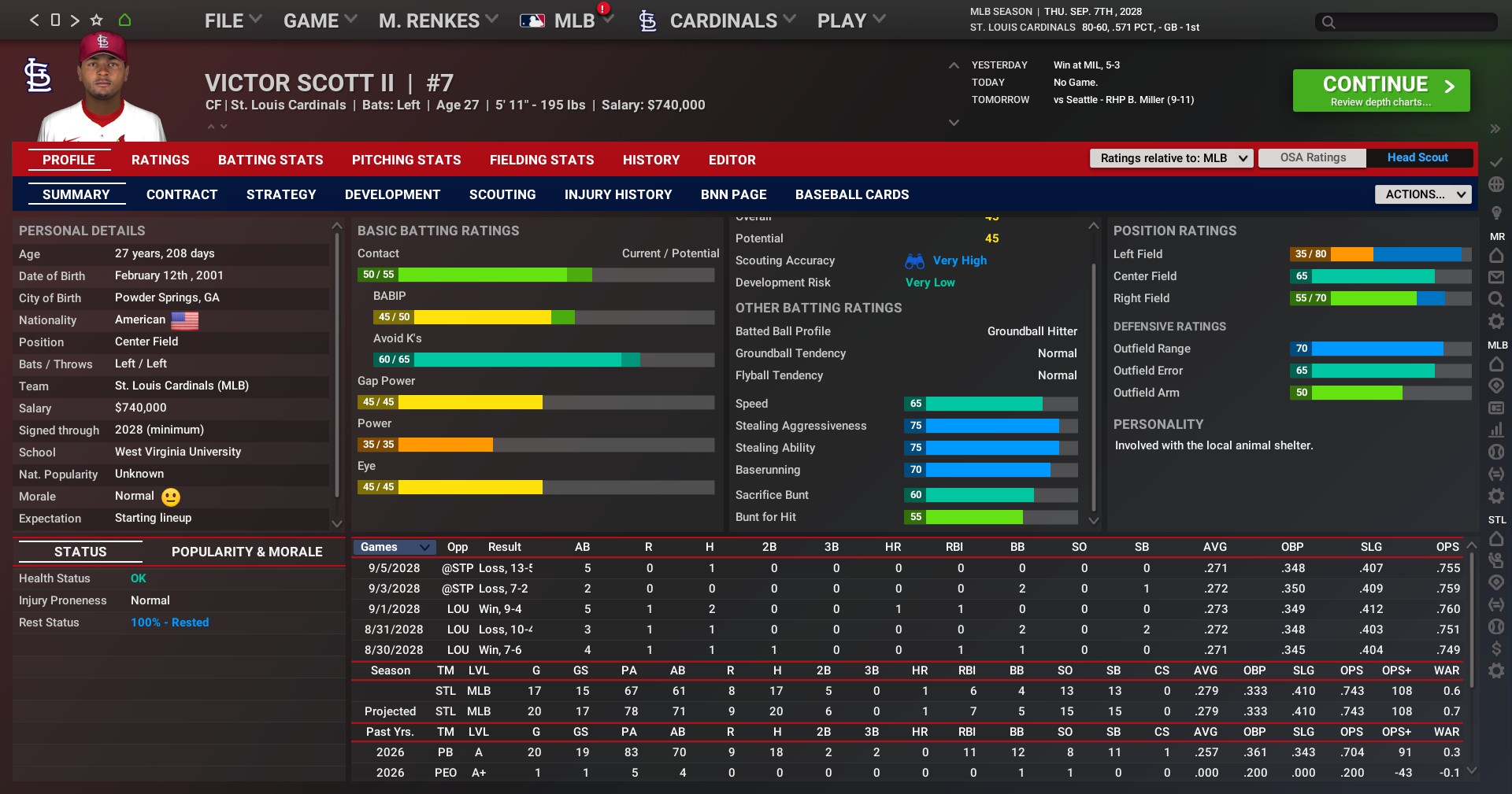 The 28-year-old Butler, who signed a five-year contract extension worth $116 million earlier this season was having another strong campaign for the Cardinals. In 127 games/124 starts, he has hit .282 with 28 home runs, 75 RBIs and 74 runs scored. Victor Scott II will be called up from AAA Memphis to take his place on the roster. |