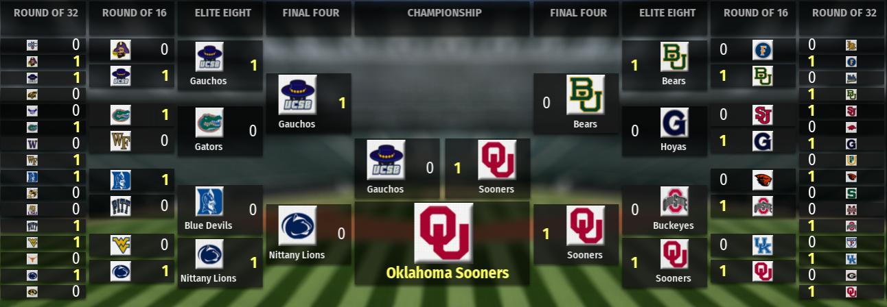 SP Curtis Adams (UHC) - 3-0, 2.25 ERA, 40.0 IP, 1.02 WHIP, 7.2 K/9, 1.7 WAR SP Aziz Chellali (BAY) - 4-1, 1.91 ERA, 42.1 IP, 0.83 WHIP, 6.0 K/9, 1.4 WAR SP Joe Cobb (UCSB) - 2-1, 2.18 ERA, 33.0 IP, 1.03 WHIP, 5.2 K/9, 1.5 WAR SP Alan Diederichs (FSU) - 2-0, 2.23 ERA, 32.1 IP, 1.18 WHIP, 3.9 K/9, 1.3 WAR SP Phillip Fox (TTU) - 1-2, 1.70 ERA, 42.1 IP, 1.02 WHIP, 5.3 K/9, 1.9 WAR SP Shane Romo (CSF) - 2-1, 1.71 ERA, 31.2 IP, 0.85 WHIP, 4.5 K/9, 1.3 WAR CL Ben Cummings (WF) - 1-0, 4 SV, 0.00 ERA, 10.0 IP, 0.40 WHIP, 8.1 K/9, 0.6 WAR CL Kyle Reifer (TAMU) - 3-0, 3 SV, 1.64 ERA, 11.0 IP, 0.82 WHIP, 11.5 K/9, 0.9 WAR C Jamal Mickles (WV) - .364/.491/.705, 44 AB, 4 HR, 215 wRC+, 1.0 WAR C Skyler Page (SJRS) - .392/.442/.646, 79 AB, 3 HR, 192 wRC+, 1.3 WAR 1B Frederic Harris (MIN) - .444/.519/.567, 90 AB, 1 HR, 189 wRC+, 1.5 WAR 2B Noah Osterhout (USC) - .403/.459/.597, 77 AB, 2 HR, 4 SB, 182 wRC+, 1.4 WAR 3B Marvin Schroeder (GAT) - .420/.500/.568, 88 AB, 1 HR, 193 wRC+, 1.7 WAR SS Tomas Reed (OSU) - .371/.430/.674, 89 AB, 6 HR, 2 SB, 195 wRC+, 1.6 WAR SS Zach Washington (VIR) - .321/.385/.526, 78 AB, 3 SB, 141 wRC+, 1.2 WAR LF Sammy Boyadjian (SDSU) - .388/.424/.706, 85 AB, 4 HR, 3 SB, 185 wRC+, 1.3 WAR CF Easton Calkins (SJSU) - .400/.452/.671, 85 AB, 3 HR, 199 wRC+, 1.4 WAR CF Gines Turner (ALA) - .358/.374/.600, 95 AB, 2 HR, 1 SB, 159 wRC+, 1.3 WAR RF Mark Lowe (UCSB) - .396/.442/.625, 96 AB, 5 HR, 191 wRC+, 1.3 WAR RF Chad Nicholson (FSU) - .382/.433/.517, 89 AB, 1 SB, 163 wRC+, 1.1 WAR Team 2: SP Beltran Aguilar (WSS) - 4-0, 2.00 ERA, 36.0 IP, 1.28 WHIP, 5.8 K/9, 1.3 WAR SP Manny Carranza (PSU) - 2-2, 3.29 ERA, 38.1 IP, 1.43 WHIP, 5.9 K/9, 1.5 WAR SP Jimmy Keith (KEN) - 2-3, 2.34 ERA, 42.1 IP, 1.02 WHIP, 4.9 K/9, 1.7 WAR SP Johnny Portrey (UC) - 3-2, 1.63 ERA, 38.2 IP, 0.85 WHIP, 5.1 K/9, 1.4 WAR (Injured) SP Moe Rasmussen (FOR) - 2-2, 0.91 ERA, 39.2 IP, 1.01 WHIP, 4.8 K/9, 1.4 WAR SP Angelo Waters (LBSU) - 4-0, 2.02 ERA, 40.0 IP, 0.90 WHIP, 5.6 K/9, 1.3 WAR CL P.J. Clark (PENN) - 3-0, 1.38 ERA, 13.0 IP, 1.08 WHIP, 9.7 K/9, 0.8 WAR CL Oswald Miller (UCLA) - 0-0, 2 SV, 0.00 ERA, 18.0 IP, 1.00 WHIP, 13.5 K/9, 1.2 WAR C Leifur Jansson (MIS) - .303/.356/.579, 76 AB, 3 HR, 128 wRC+, 0.7 WAR C Austin Lowery (UCLA) - .355/.402/.645, 76 AB, 5 HR, 181 wRC+, 1.0 WAR 1B Richard Thomasson (FSB) - .379/.451/.609, 87 AB, 3 HR, 187 wRC+, 1.4 WAR 2B Kyle Brafford (TAMU) - .333/.429/.630, 81 AB, 2 HR, 1 SB, 180 wRC+, 1.1 WAR 2B Jason Hunnicutt (WASH) - .344/.385/.556, 90 AB, 2 HR, 4 SB, 156 wRC+, 1.3 WAR 3B Keith Schaeffer (SFD) - .333/.406/.578, 90 AB, 4 HR, 169 wRC+, 1.2 WAR SS Dan Barrett (MIS) - .372/.417/.574, 94 AB, 4 HR, 1 SB, 164 wRC+, 1.3 WAR LF James Narita (IND) - .398/.430/.554, 83 AB, 2 HR, 167 wRC+, 1.0 WAR CF Thomas Bailey (MSB) - .400/.447/.518, 85 AB, 1 HR, 5 SB, 163 wRC+, 1.2 WAR CF Jimmy Keller (KEN) - .400/.402/.640, 100 AB, 3 HR, 2 SB, 180 wRC+, 1.4 WAR CF Kian Lockhart (SJRS) - .375/.430/.534, 88 AB, 1 HR, 1 SB, 157 wRC+, 1.1 WAR RF Skylar DeMarco (LSU) - .411/.456/.642, 95 AB, 3 HR, 198 wRC+, 1.2 WAR |