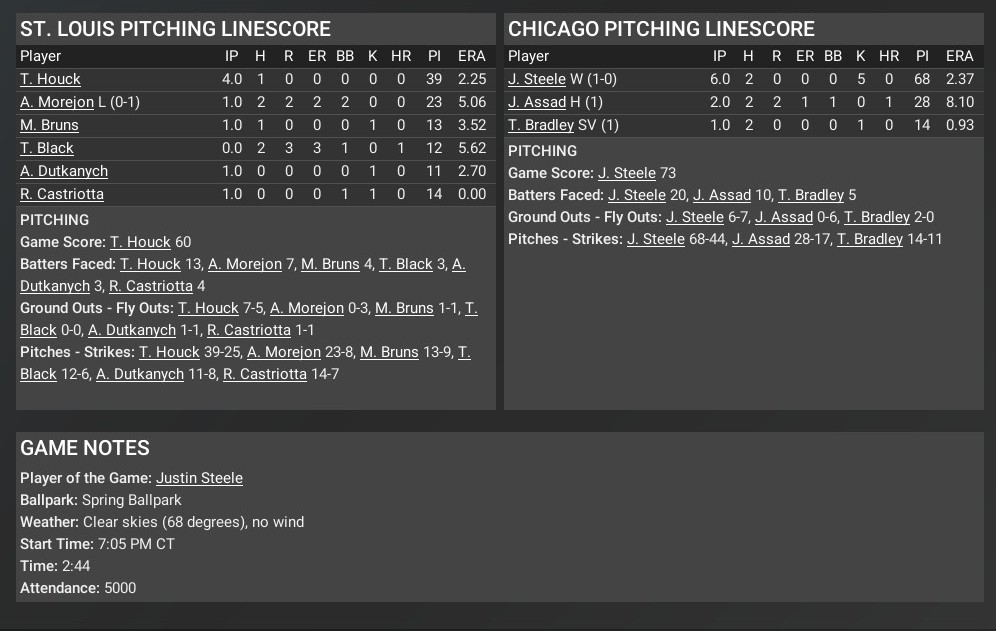 Cards news: March 12 -- Spring Training - Chicago Cubs 5, St. Louis Cardinals 2, 9-7-7
