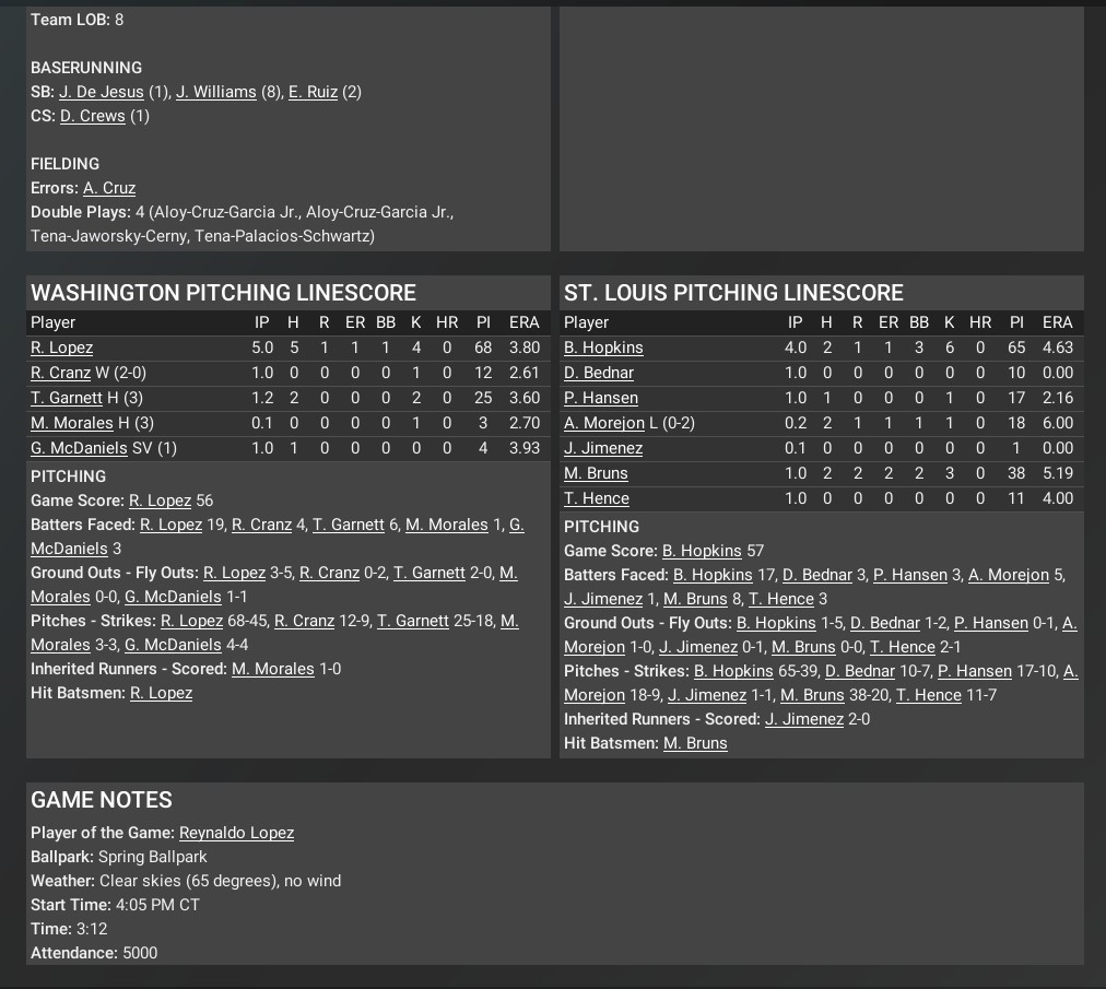 Cards news: March 13 -- Spring Training - Washington Nationals 4, St. Louis Cardinals 1, 9-8-7