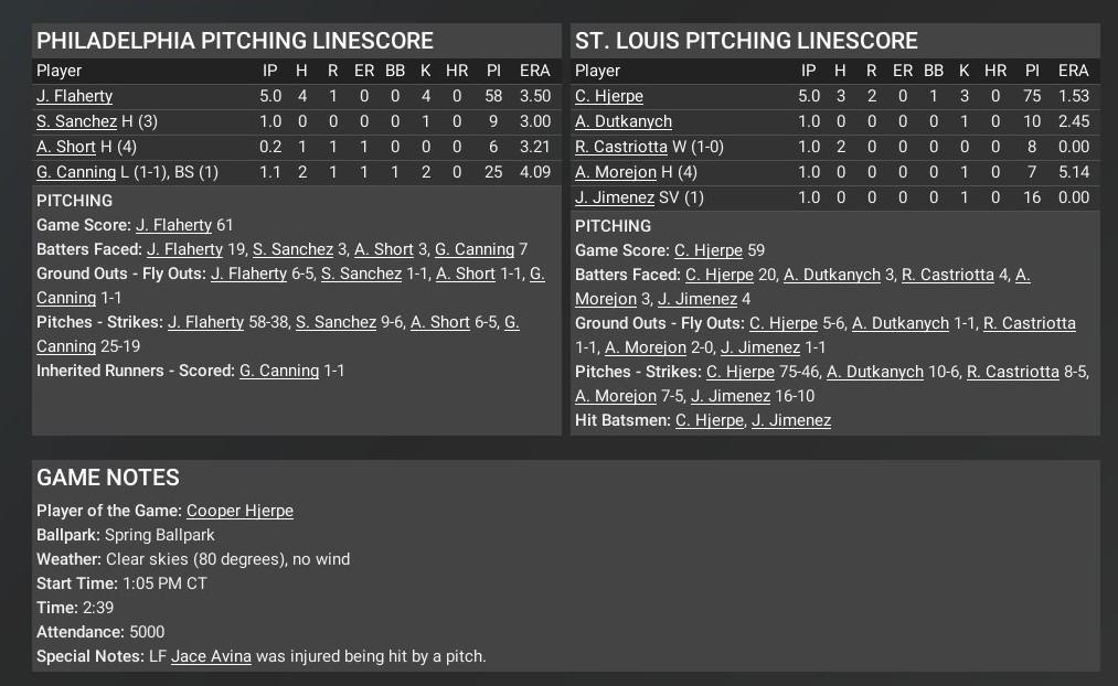 Cards news: March 16 -- Spring Training - St. Louis Cardinals 3, Philadelphia Phillies 2, 10-9-8