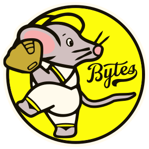 the Bytes! I originally wanted to do something severe and abstract for this, but after looking at a tech company logo or two I scrapped that and went kawaii again. This is based on an old logo for the Taiwanese Brother Elephants - I drew the mouse head, added uniform details and a longer tail.