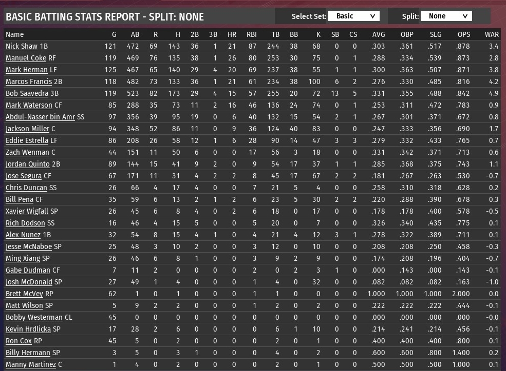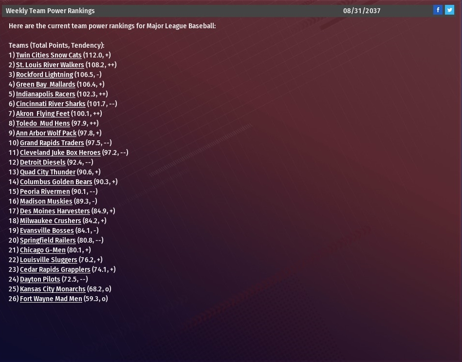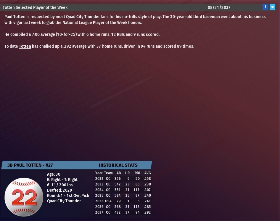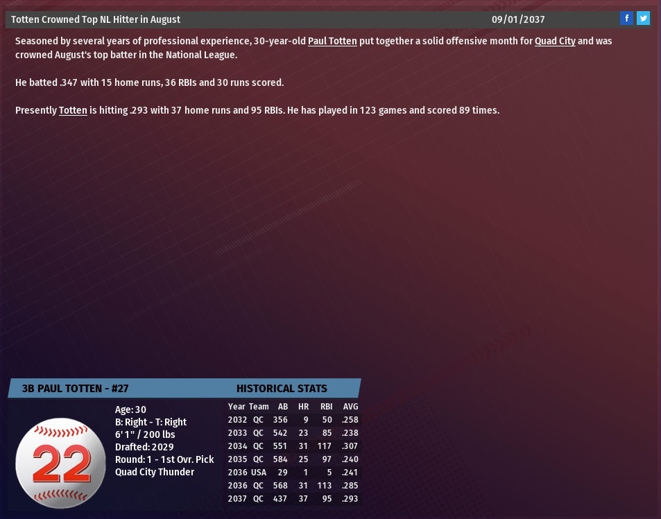 Walkers news: Sept. 1 -- Team statistics for 2037 season