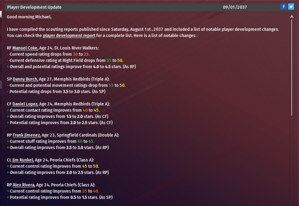 Walkers news: Sept. 1 -- Player Development Report