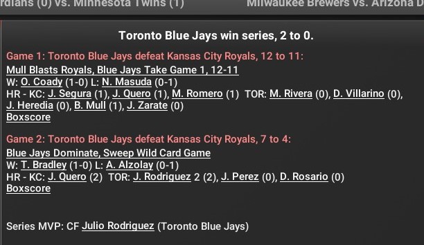 MLB news: Oct. 4 - AL Wild-Card Series -- Toronto Blue Jays def. Kansas City Royals, 2-0