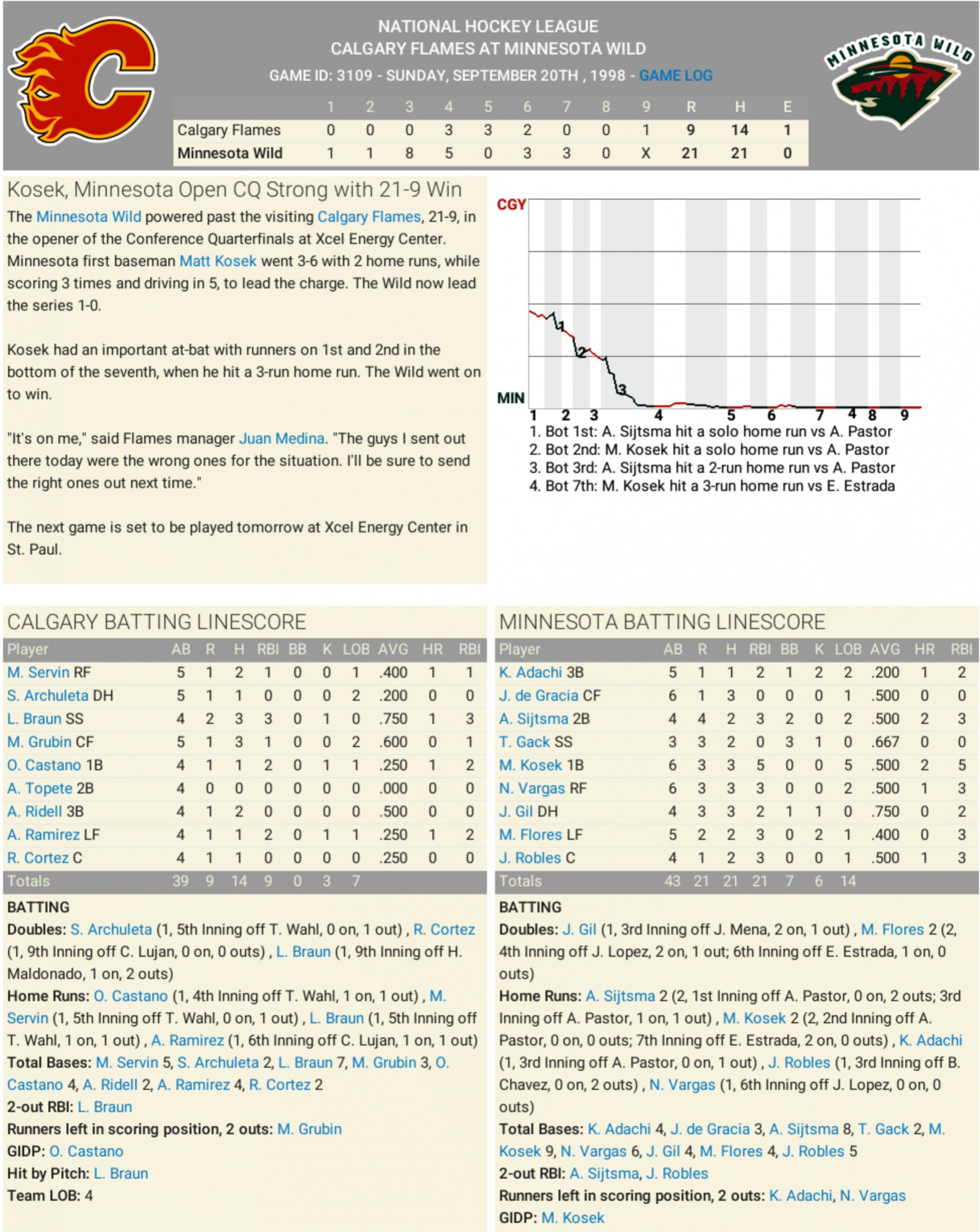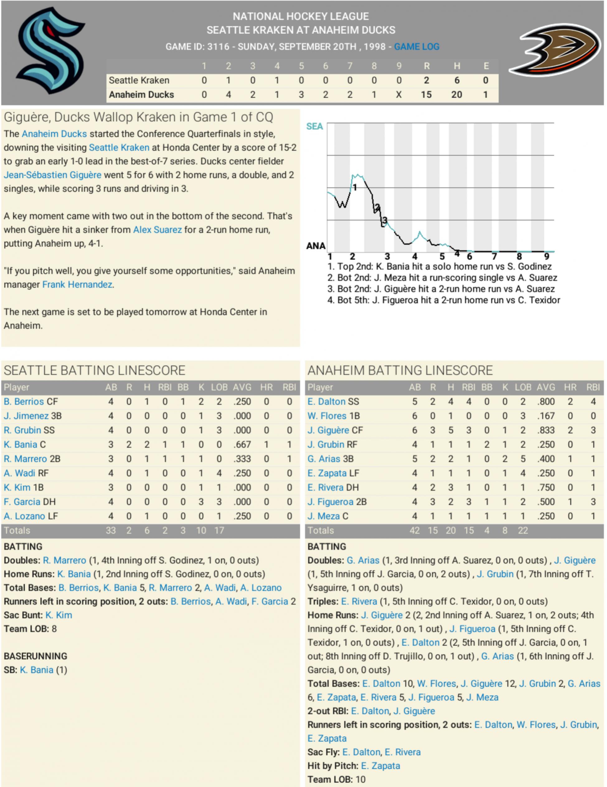 1998 NHL Standings