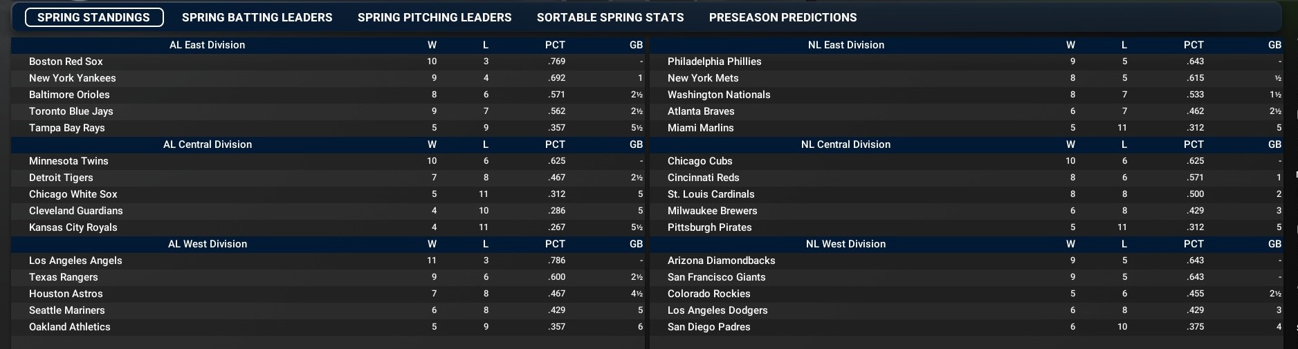 MLB news: March 25 -- Spring Training -- Week 3 - Standings and leaders