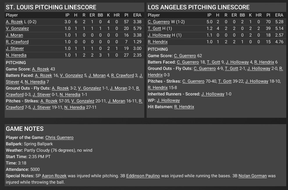 Cards news: March 23 -- Spring Training -- L.A. Dodgers 6, St. Louis 4, (9-12)