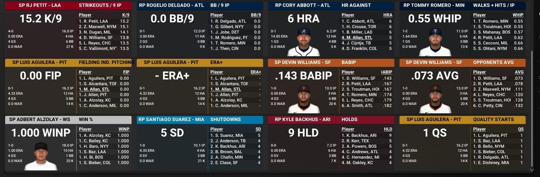 Cards news: March 25 -- Week 3 -- Individual team statistics